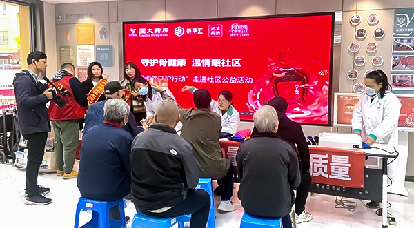 國大藥房黨群工作部部長任偉平表示:“今天我們與鴻茅藥酒廠家,走進下元眾紡路社區(qū)開展公益活動,主要是為了深入社區(qū),為居民提供骨密度、血壓和血糖的檢測,同時本次公益活動主要也是做關(guān)于骨骼健康的科普知識宣傳,為社區(qū)老年人提供更多預防和健康方面的科普講座,希望他們在平日里,能夠多關(guān)注自己的骨骼健康。”