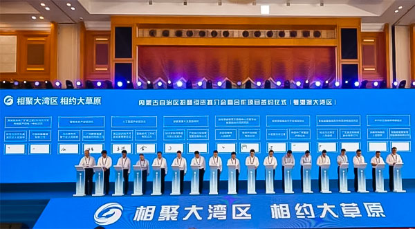 10月20日,內(nèi)蒙古自治區(qū)人民政府在廣東省深圳市舉行“相聚大灣區(qū),相約大草原”——內(nèi)蒙古自治區(qū)招商引資推介會(huì)暨合作項(xiàng)目簽約儀式(粵港澳大灣區(qū))。內(nèi)蒙古自治區(qū)黨委書(shū)記孫紹騁出席,內(nèi)蒙古自治區(qū)黨委副書(shū)記、自治區(qū)主席王莉霞致辭,內(nèi)蒙古自治區(qū)黨委常委、自治區(qū)常務(wù)副主席黃志強(qiáng)主持會(huì)議,內(nèi)蒙古自治區(qū)副主席楊進(jìn)作推介發(fā)言。355家企業(yè)代表齊聚盛會(huì), 共商合作、共話發(fā)展,旨在進(jìn)一步深化同粵港澳大灣區(qū)的各領(lǐng)域合作。